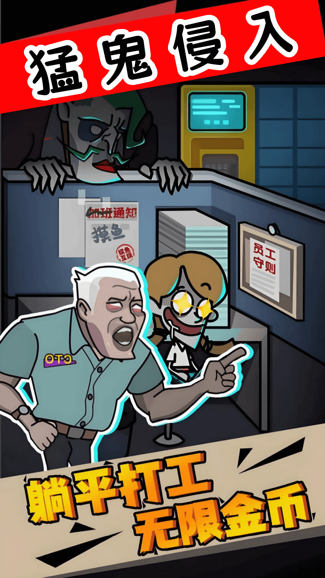 3、多样防御道具任你选,从电脑电棍到文件柜盾牌,抵御猛鬼入侵,守护摸鱼时光。
